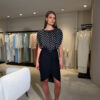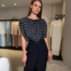 Silk polka dot top and pencil skirt