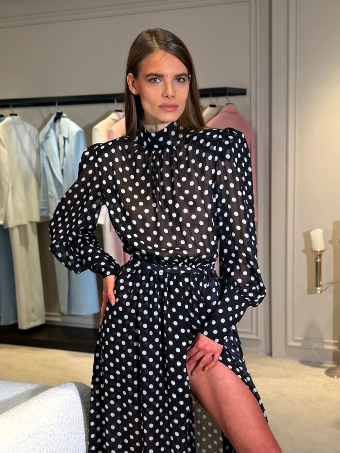 Chiffon maxi dress with slit and long sleeves
