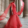 Цей яскравий червоний комплект поєднує архітектурну чіткість міні-сукні з легкою, невагомою естетикою органзи. Структурована міні-сукня, прикрашена ґудзиками золотого тону, формує сучасний, лаконічний силует. Прозора спідниця з органзи створює ефект об’єму та плавного руху — і водночас є знімною, що дозволяє носити її як окремий елемент гардеробу.